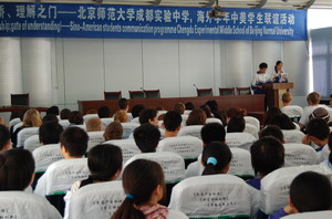 | 2006年11月13日,我校迎来了北京师范大学海外学年的60余名学员,不同国籍、不同肤色的中学生在我校学术报告厅欢聚一堂。在欢迎仪式上,我校张玉萍副校长致辞对海外学年师生的到来表示热烈的欢迎,随后,海外学年的教师代表在讲话中对我校的热情、真诚表示了深深的谢意。一场跨越国界的联谊活动在友好、融洽的氛围中拉开了序幕。欢迎仪式后,海外学年的学员参加了由我校精心设计的课堂交流、书法赏析、手工制作、品位中国等系列活动。在整个活动中,海外学年的学员与我校学生时而用英语交流,时而用中文交流,将“理解、友谊”体现得淋漓尽致。一年一度的联谊活动,不仅为我校学生提供了良好、充分的交流、学习空间,更是增进了各国学生之间的友谊。 | |