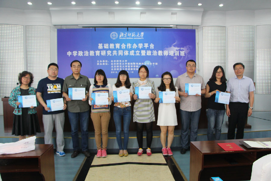 【政治组吴鸿讯】2015年5月14——16日,由、北京师范大学哲学学院主办,由我校承办的基础教育合作办学平台中学政治教育研究共同体成立暨政治教师培训班在我校举行。