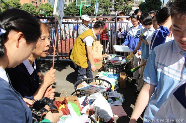 最后,全校2000多师生将自己带来的各种废旧物品分类的投入到资源回收框里,进一步的加深了垃圾分类处理、资源回收利用的意识。环境保护、人人有责。此次活动,慈济慈善事业基金会还带来了30多幅关于慈善和环保的宣传海报以及从塑料瓶回收到制作成衣服、毛毯的资源再利用的实物展览,给全校师生留下了深刻的印象。成都市的几家电视台以及慈济的电视台进行了现场的录播。此次的展览还将在学校进行2天左右的展览,以进一步的影响教育我们的师生。
