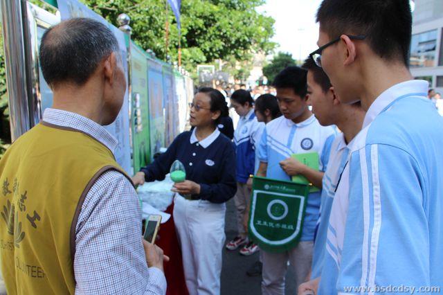 今年的活动由20多位慈济的志工们《一个干净的地球》手语操开始,轻柔的旋律,充满寓意的手势,饱满的激情,善良的微笑把活动迅速的带入到美好的意境之中——我们都需要、渴望一个干净的地球。随后慈济的志工代表 充满激情的讲话让我们更加明白保护我们的地球迫在眉睫。学校党委书记潘仲平和志工代表以分类投放废弃物的方式启动学校的环保活动。张校长随后在针对全校的发言中倡议到:希望今天的活动能唤醒全校师生的环保意识,从身边做起、从垃圾分类等小事做起、从今天的带来一个废旧电池做起!为成都的蓝天白云做出我们的贡献。