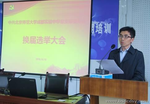 总支委员王枝国宣读了《中共成都市教育局机关委员会关于同意北京师范大学成都实验中学党总支升格为党委的批复》,根据批复,我校正式升格为党委,下设四个党支部。