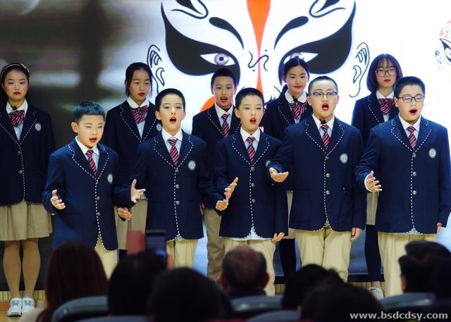 我校初一10班孩子的《唱脸谱》,一唱,大家就明白了。那一个个,动作、眼神儿、技巧,有模有样儿的。大方、活灵活现的表演,赢得观众们阵阵喝彩!